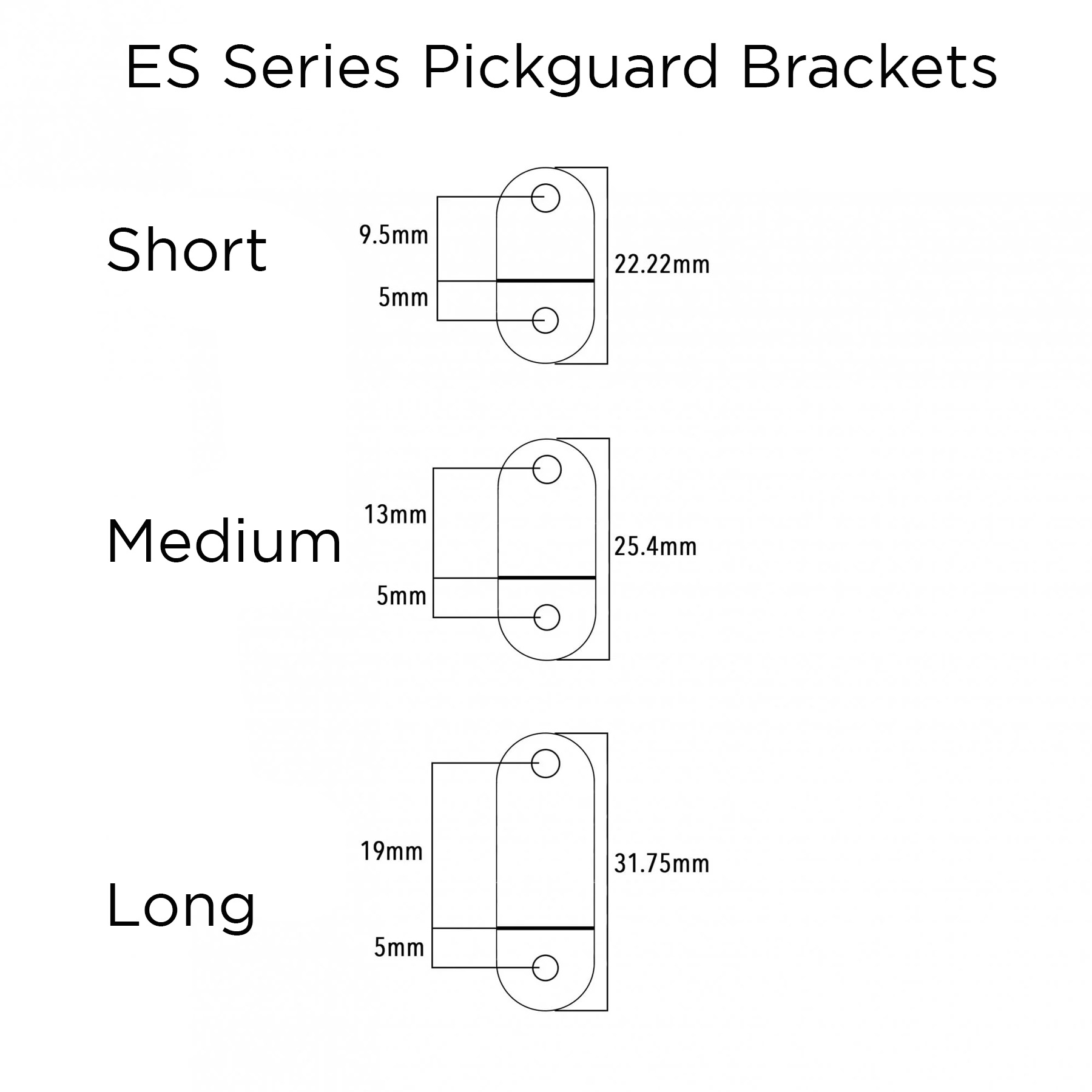 This bracket is made in the USA and is suitable for most modern Gibson ES-335 and ES-175 guitars. It comes with a black ABS block with adhesive strip to fix to the pickguard. The threads on this bracket are imperial 5-40.
