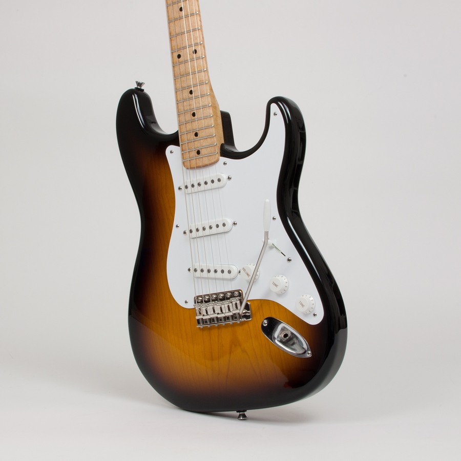 This guitar is fitted with Callaham metal hardware, Raw Vintage tremolo springs, Lindy FRalin Vintage Hot, RS Guitarworks Superpot and Phone Book Capacitor and wired in the '54 style. The tones are strong and fat on the neck, powerful and biting on the bridge but without any of the shrillness with plenty of stratty quack on the in between settings all of which are that bit brighter due to the one piece maple neck.