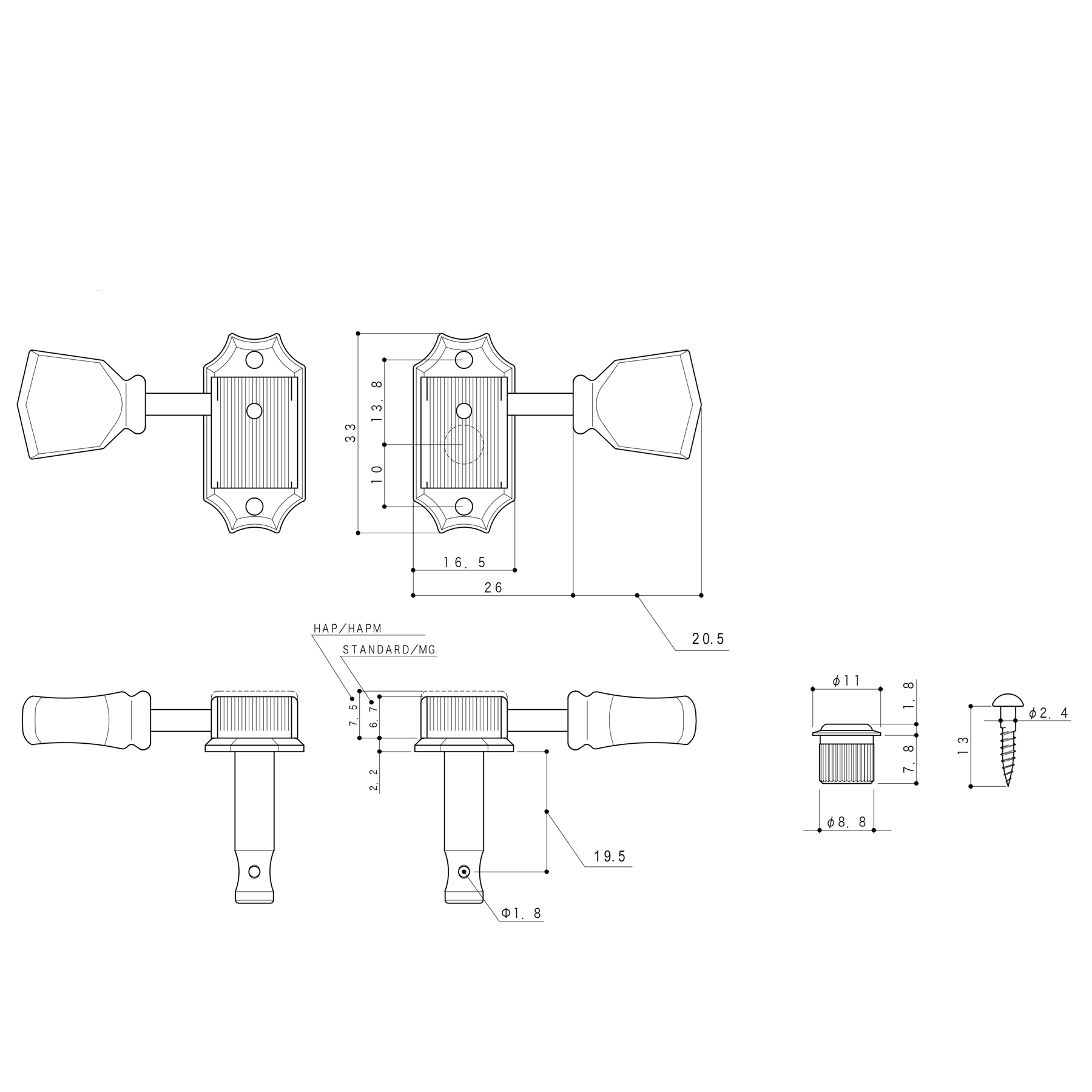 Precise reproduction of the classic Kluson "Single Line" tuner with tulip knob for old Les Pauls and other guitars of this period.