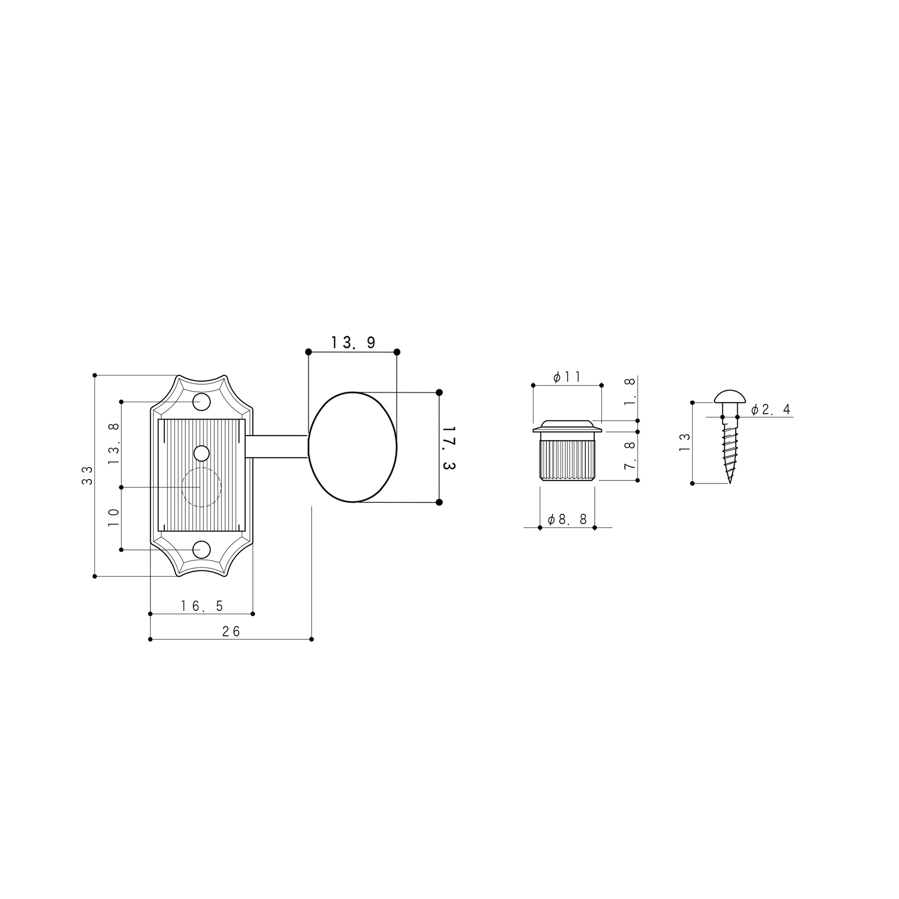 These 3 per side Kluson tuners have been gently aged to take off the new shine.